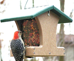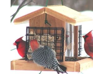 So, if you were to have only one backyard bird feeder, a hopper bird feeder filled with the right wild bird feed would be my recommendation. You’ll attract a large variety of desirable birds. It works even better if you have two hopper bird feeders so you can offer a variety of wild bird feeds. Two will also help keep the feeders from getting overcrowded, or a dominant bird claiming a feeder keeping other birds at bay.